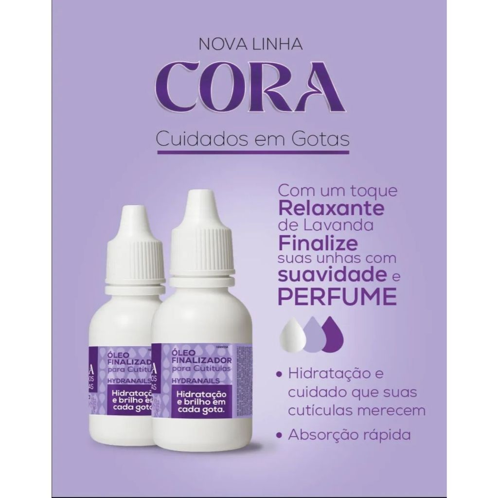 NÃO ACOMPANHA A CAIXA TIPO MALETA CORA Gotas Milagrosas Cora 20ml - A Cora Criou a mais nova Solução para unhas unhas, com a praticidade que você precisa, Uma Gota e a Magica Acontece!!! Este Anuncio Contem; 1 Unidade de GOTAS MILAGROSA PARA AS UNHAS CORA 10ML (ESCOLHA SUA VARIAÇÃO PREFERIDA) :) Você pode Escolher; - SX Secante Ultra Rápido 20ml - Com uma fórmula inovadora, este produto garante unhas secas em tempo recorde, sem deixar resíduos oleosos na unha ou na pele. - Mata Mico Proteção Contra Micoses 20ml - É muito poderoso e eficaz contra bactérias e fungos que causam doenças nas unhas, deixando suas unhas saudáveis e protegidas. - Pedra Hume Cicatrizante 20ml - Sua fórmula exclusiva é ideal para estancar pequenos sangramentos em cutículas, proporcionando alívio imediato e segurança durante o cuidado das unhas. - Óleo Finalizador de Cutículas Lavanda 20ml - Finalize suas unhas e cutículas com suavidade e um toque relaxante de Lavanda, que perfuma e cuida ao mesmo tempo. - Óleo Finalizador de Cutículas Rosa Mosqueta 20ml - Com poder regenerador da Rosa Mosqueta, hidrata profunda e auxilia na recuperação da pele delicada ao redor das unhas. - Salva Esmalte Recuperador de Esmaltes 20ml - Com apenas 3 gotinhas, o Salva Esmalte devolve a textura ideal, deixando o esmalte novinho em folha. - Produto Original c/nota fiscal - Envio imediato por transportadora SHOPEE EXPRESS - Compra Segura SHOPEE - Receba seu pedido ou tenha seu Dinheiro de volta. - Loja Indicada pela shopee, é mais seguro comprar por aqui - Avaliação 5 Estrelas pela grande maioria dos clientes Blue cosméticos Distribuidora - Nós Trabalhamos por você!!!