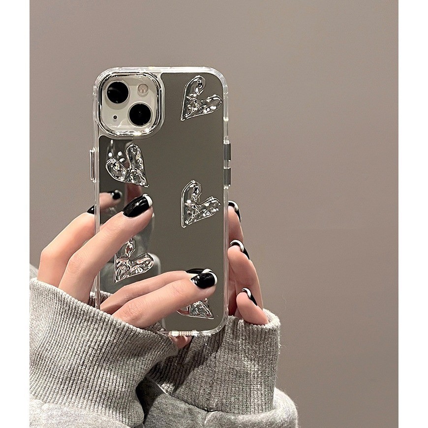 Coração Tridimensional , Capa De Telefone Espelhada , Lente Protetora Conveniente À Prova De Choque Para 17/11/12/13/14/