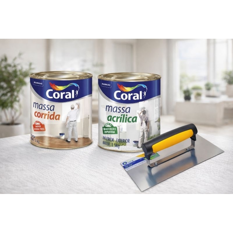Catalogado na subcategoria Tintas e Revestimentos para Paredes (de Casa e Construção), Coral Massa Corrida e Acrílica Branca Interna 1,5kg e Kit com Desempenadeira Lisa 10x24cm está à venda na Shopee Brasil por R$ 23,99.