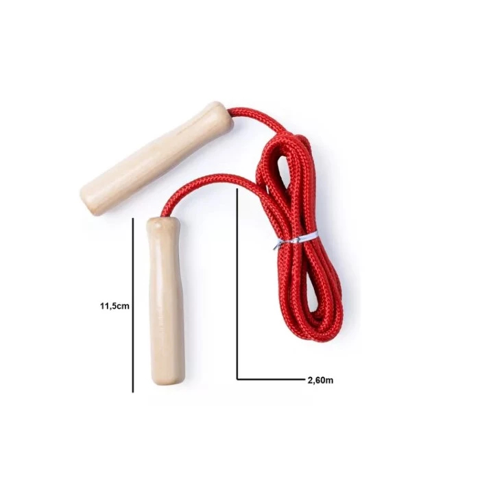 Ficha Técnica: Produto: Corda de pular Material: Madeira, Polipropileno e PVC Características: Resistente à abrasivos e ao frio. Corda flexível e giratória. Quantidade: 1 unidade Tamanho: 2,62 metros Cores: Enviamos com a cor aleatório por estoque (amarelo,,vermelha, pink,azul e verde)