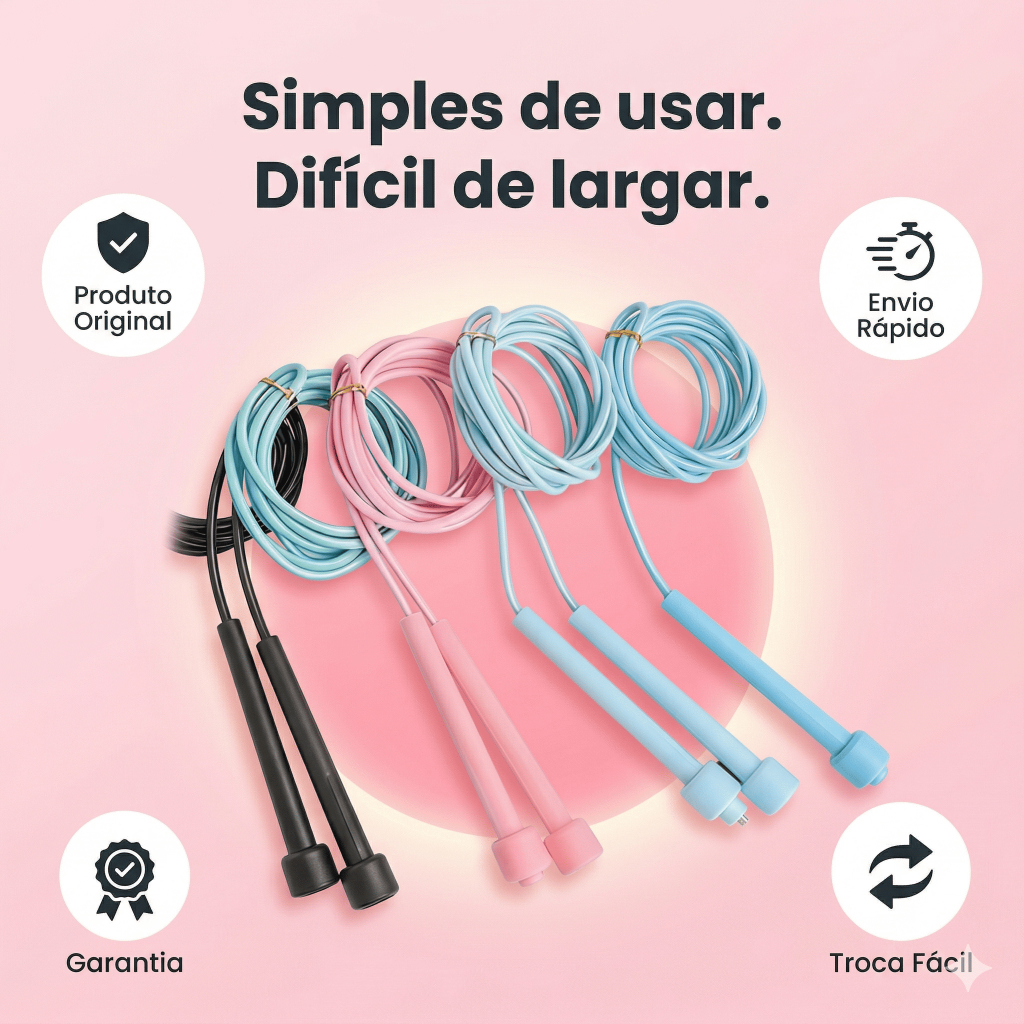 🔹 Chega de corda travando no meio do treino Se você já tentou pular corda e perdeu o ritmo porque ela embola ou não acompanha seu movimento… 👉 o problema não é você — é a corda errada. 🔹 Feita pra acompanhar seu ritmo Leve, flexível e com ajuste simples, essa corda permite um movimento mais fluido e natural. Você começa… e consegue continuar sem interrupções. 🔹 Simples de ajustar, fácil de usar Ajuste rápido direto nos pegadores Compatível com diferentes alturas Ideal para iniciantes e treinos mais intensos 👉 Sem complicação, sem perda de tempo. 🔹 Especificações claras (sem enrolação) Comprimento: 2,80m ajustável Material: PVC + polipropileno Peso: aprox. 200g (leve e confortável) Rotação: livre (movimento contínuo) Cores: preto, rosa e azul 🔹 Benefícios reais no dia a dia Ajuda na queima de calorias Melhora o condicionamento físico Trabalha coordenação e equilíbrio Pode ser usado em casa ou ao ar livre 👉 Um dos treinos mais simples e eficientes que existem. 🔹 Use onde quiser Casa, academia, ao ar livre ou onde tiver espaço. Leve na mochila e treine a qualquer momento. 🔹 Compra sem complicação ✔ Produto novo ✔ Envio rápido ✔ Garantia contra defeitos 👉 Comece hoje e sinta a diferença já nos primeiros minutos.