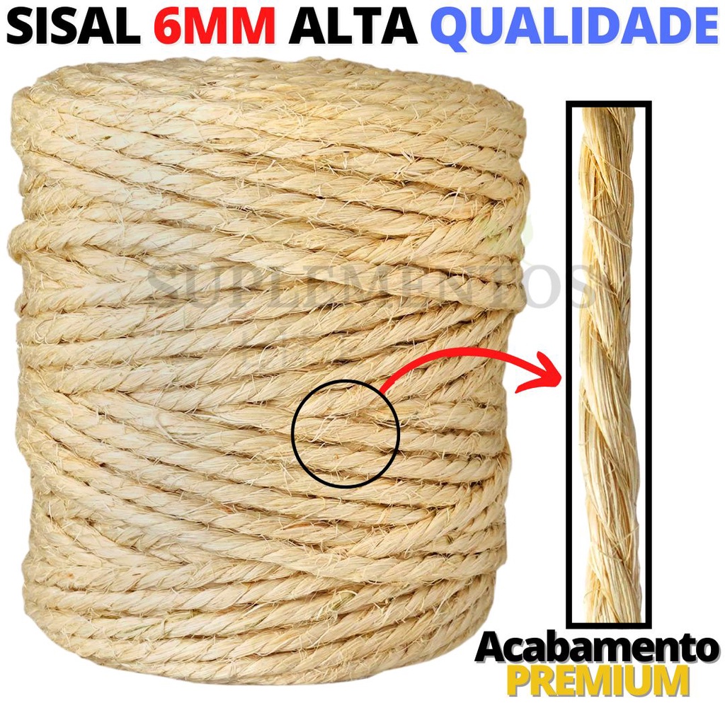Corda De Sisal Natural 6mm Rolo 2kg Aprox 134 Metros Arranhador Para Gatos Artesanato Em Geral