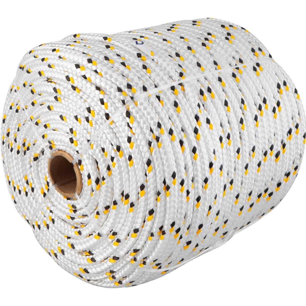 Corda Multifilamento Trançada 10,0 Mm X 110 M, Branca Com Detalhes Em Preto E Amarelo, Vonder Fabricada em polipropileno - PP, possui boa resistência à abrasão e tração. Material 100% virgem. Ideal para amarração de cargas, fardos, confecção de barrigueiras, redes de proteção esportivas, utilização em frigoríficos, cortinas de aviários e na agricultura em geral. Não utilizar para elevação/transporte de pessoas, cargas ou animais. Não utilizar em cadeiras suspensas, cabos de guia de segurança e fixação de trava quedas. Variação admitida na massa e diâmetro de até 5% para mais ou para menos. Não indicada para uso externo ou locais onde possa ter incidência direta de sol, pois não possui proteção contra raios ultravioleta. Especificações Técnicas: Material da corda: Polipropileno - PP Diâmetro da corda: 10,0 mm Comprimento total da corda: 110,0 m Tipo de construção da corda: Trançada Tipo de filamento da corda: Multifilamento Carga de ruptura: 685 kgf Cor da corda: Branca com detalhes em amarelo e preto Massa aproximada por rolo/carretel: 4,5 kg Conteúdo da Embalagem: 1 Rolo com 110 metros.