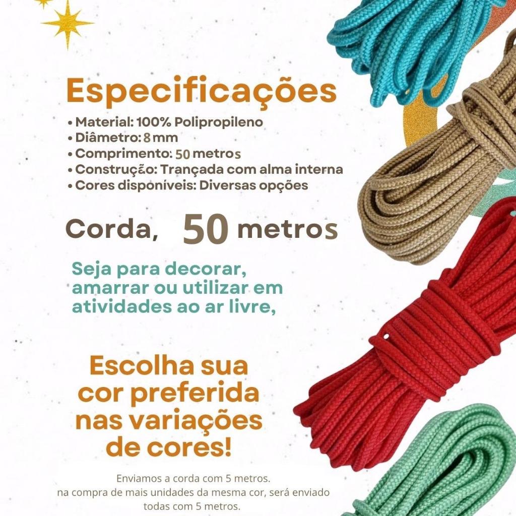 Bem-vindo à JOAY CORDAS, aqui você encontra cordas de qualidade! Apresentamos nossa Corda de Seda Polipropileno de 8mm com 50 metros, uma escolha premium para uma variedade de aplicações, desde atividades ao ar livre até trabalhos artesanais. Especificações do Produto: Espessura: 8mm Comprimento: 50 Metros Material: Seda Polipropileno de Alta Qualidade Proteção UV: Equipada com proteção UV de alta densidade, garantindo resistência duradoura aos efeitos prejudiciais do sol. Ideal para uso em ambientes externos, garantindo durabilidade sob todas as condições climáticas. Maleabilidade: Esta corda é surpreendentemente maleável, permitindo fácil manuseio e flexibilidade excepcional. Adaptável a várias aplicações, garantindo facilidade de uso em qualquer situação. Alma (Miolo): Possui uma alma interna resistente, proporcionando estabilidade estrutural à corda. Esta característica torna a corda mais robusta e capaz de lidar com cargas variadas, tornando-a ideal para móveis, artesanato, selaria, macramê. Aplicações Versáteis: Sua maleabilidade a torna ideal para trabalhos artesanais, Com esta corda, suas possibilidades são infinitas. Durabilidade Garantida: Fabricada com materiais da mais alta qualidade, esta corda é resistente ao desgaste, garantindo durabilidade e longevidade. Você pode confiar plenamente nesta corda para suas atividades ao ar livre e projetos criativos, sabendo que ela resistirá ao teste do tempo. Observação: O desbotamento como a degradação do produto são um processo natural, é uma característica do produto. Por este motivo não damos garantia por desbotamento. A utilização de produtos químicos, como cloro, água sanitária, e outros produtos abrasivos, podem inibir o efeito da proteção ultravioleta acelerando o processo de desbotamento e degradação. As cores apresentadas podem sofrer variação de tonalidade de acordo com a configuração do monitor ou celular, não se enquadrando como devolução por defeito. Dica: Para garantir uniformidade, sugerimos que adquira toda a quantidade necessária de rolos para confeccionar seu projeto em uma única compra, pois cores da mesma referência (nome)