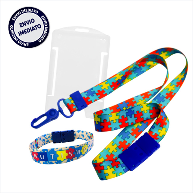 Cordão Autista Com Trava De Segurança + Porta Crachá + Pulseira Autismo