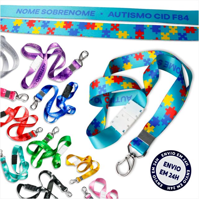 Cordão Autista Personalizado com Nome e CID Colorido com Trava de Segurança em 11 Cores