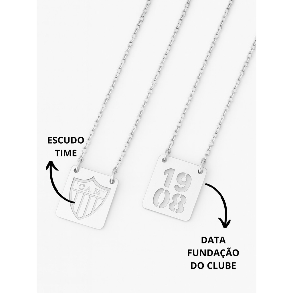 Cordão Colar Escapulário 60cm Prata Unissex Time Pingente Atlético Mineiro Galo Aço Inox