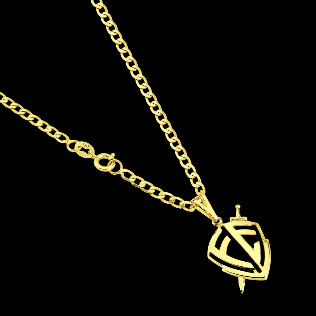 Cordão Corrente Masculino + Pingente Escudo da Fé Banhados a Ouro 18k 60cm e 70cm