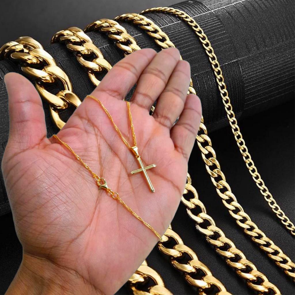 CORRENTE INFANTIL + 1 PINGENTE CRUZ IMPORTANTE Temos 3 tamanhos diferente que atenderá as crianças de todas as idades e até adolescentes. Verifique qual a melhor medida antes de efetuar a compra. MEDIDAS: Tamanho P: corrente 40 cm (02 até 04 Anos) Tamanho M: corrente 45 cm (05 até 09 Anos) Tamanho G: corrente 50 cm (09 até 12 Anos ou Mais) Espessura da corrente: 2,0 mm MATERIAL: Dourado – banhado a ouro 18 k GARANTIA: 12 Meses de Garantia -Produto de Alta qualidade e durabilidade de vários anos - Não descasca nem Desbota - Excelente peça com um lindo acabamento no ouro ou na prata deixando a peça idêntico a Joia no ouro 18k pois a pôs a nossa fabricação ela se transforma em uma linda semi joias com toda garantia da nossa loja - NA FABRICAÇÃO DAS NOSSAS PEÇAS APLICAMOS Extra Um processo de verniz e uma camada Extra de ouro 18k para que suas peças tenha uma durabilidade a inda maior por isso oferecemos garantia para nossos clientes. Nosso processo de banho é projetado para uma duração de muitos anos desde que siga os cuidado que enviamos para você. - TENHA ALGUNS CUIDADOS COM SUA SEMI JOIAS Guarde cada peça em embalagem distinta evitando atritos entre elas, pois pode danifica-las. - Recomendamos não passa nas peças Creme dental, locação, perfume, sabonete, shampoo, condicionadores e outros produtos químicos. - Retire as peças No banho de piscina ou mar. - O seu maior cuidado vai garantir uma semi joias com muitos anos de duração. - Nossa garantia NÃO cobre escurecimento por sujeira. NÃO inclui avarias decorridas de queda por mal uso acarretando quebra ou deslocamento de pedras por acidentes de qualquer natureza ou contato de produtos químicos. Processo de garantia Troca somente com certificado de garantia de cada peça.