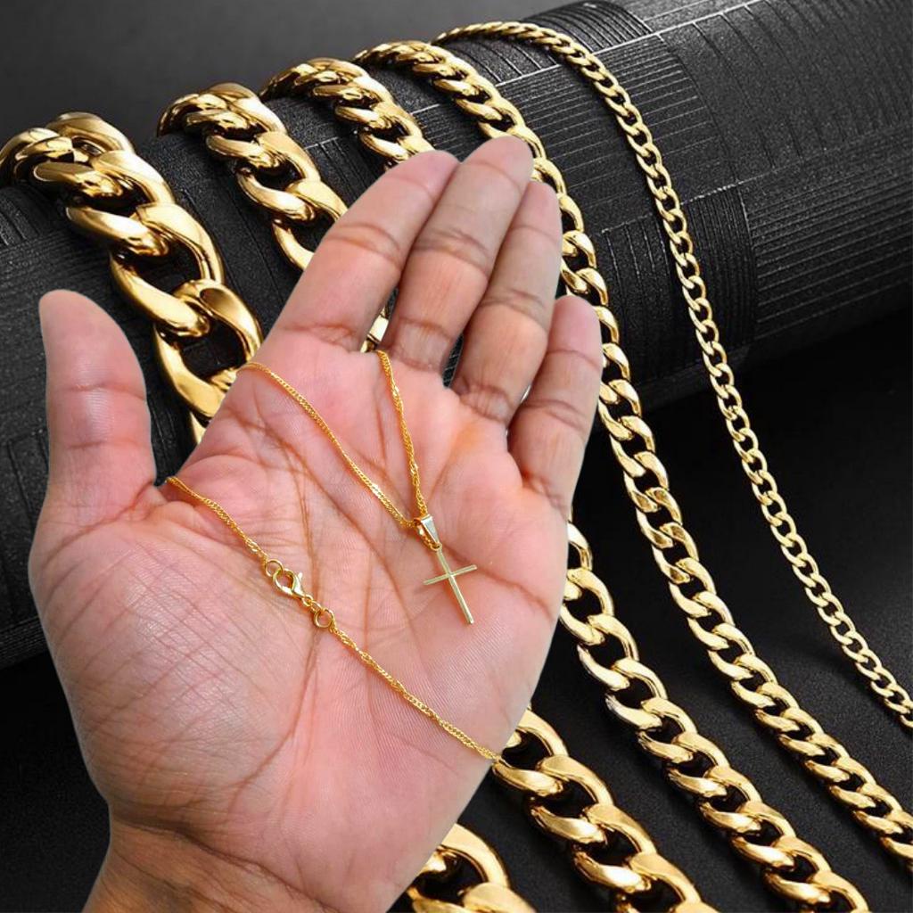 CORRENTE INFANTIL + 1 PINGENTE CRUZ IMPORTENTE Temos 3 tamanhos diferente que atenderá as crianças de todas as idades e até adolescentes. Verifique qual a melhor medida antes de efetuar a compra. MEDIDAS: Tamanho P: corrente 40 cm (02 até 04 Anos) Tamanho M: corrente 45 cm (05 até 09 Anos) Tamanho G: corrente 50 cm (09 até 12 Anos ou Mais) Espessura da corrente: 2,0 mm MATERIAL: Dourado – banhado a ouro 18 k GARANTIA: 12 Meses de Garantia -Produto de Alta qualidade e durabilidade de vários anos - Não descasca nem Desbota - Excelente peça com um lindo acabamento no ouro ou na prata deixando a peça idêntico a Joia no ouro 18k pois a pôs a nossa fabricação ela se transforma em uma linda semi joias com toda garantia da nossa loja - NA FABRICAÇÃO DAS NOSSAS PEÇAS APLICAMOS Extra Um processo de verniz e uma camada Extra de ouro 18k para que suas peças tenha uma durabilidade a inda maior por isso oferecemos garantia para nossos clientes. Nosso processo de banho é projetado para uma duração de muitos anos desde que siga os cuidado que enviamos para você. - TENHA ALGUNS CUIDADOS COM SUA SEMI JOIAS Guarde cada peça em embalagem distinta evitando atritos entre elas, pois pode danifica-las. - Recomendamos não passa nas peças Creme dental, locação, perfume, sabonete, shampoo, condicionadores e outros produtos químicos. - Retire as peças No banho de piscina ou mar. - O seu maior cuidado vai garantir uma semi joias com muitos anos de duração. - Nossa garantia NÃO cobre escurecimento por sujeira. NÃO inclui avarias decorridas de queda por mal uso acarretando quebra ou deslocamento de pedras por acidentes de qualquer natureza ou contato de produtos químicos. Processo de garantia Troca somente com certificado de garantia de cada peça.