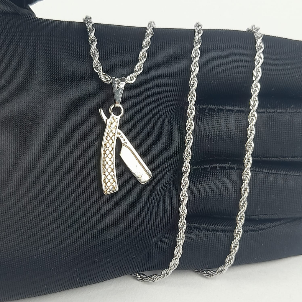 Cordão Corrente Pingente Navalha Barbeiro Em Aço
