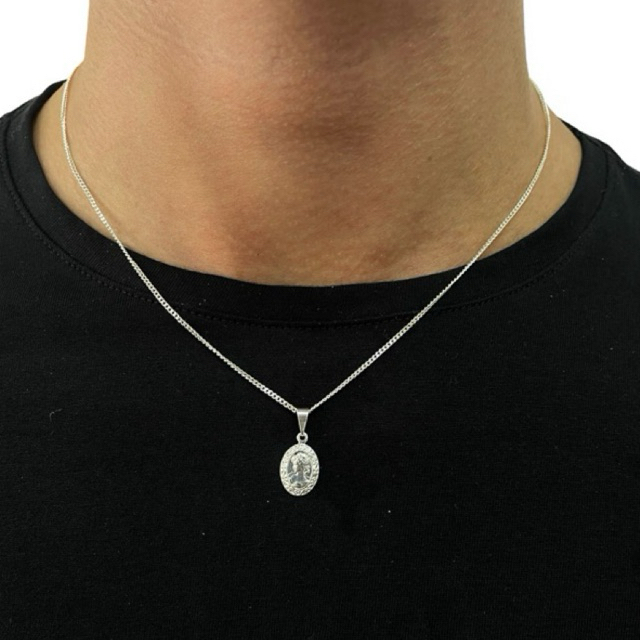 Cordao Corrente Prata 925 Curtinha 48cm Masculina + Pingente Camafeu Folheado