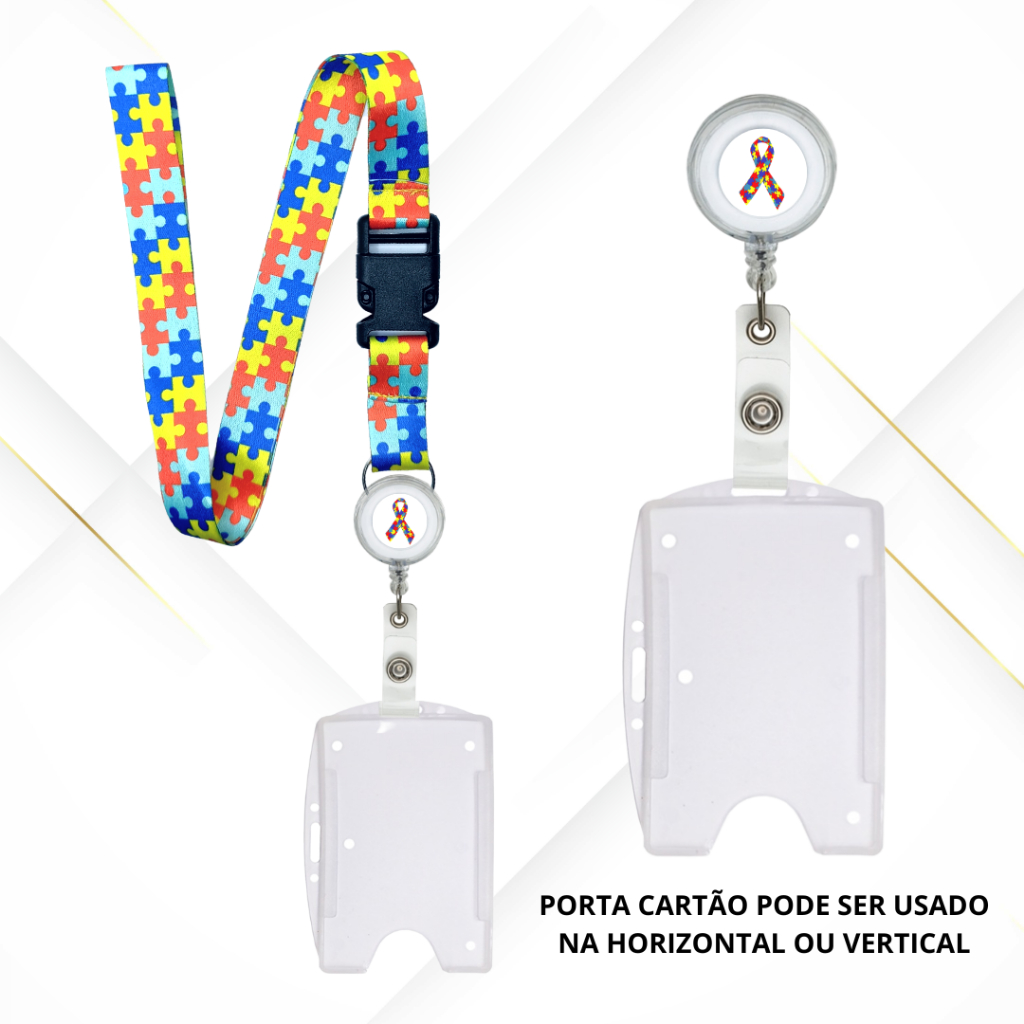 Cordão de Identificação Autismo + Roller Clip Autista + Porta Cartão Transparente