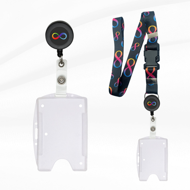 Cordão de Identificação Infinito Neurodiversidade + Roller Clip Neurodiversidade + Porta Cartão Transparente