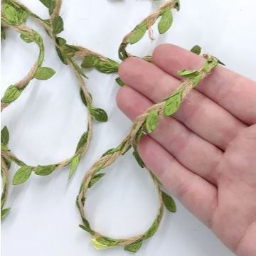 Fio de juta 100% natural enfeitado com folhas verde musgo Perfeito para decoração de arranjos de flores, vasos, coroas de flores, decoração de casamento, aniversários, eventos, chá de bebê, festas, etc. Fio em juta 100% natural Medidas: 10 metros Cor do cordão: Natural Cor da folhagem: Verde Musgo