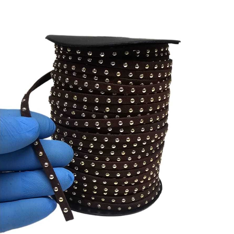 Cordão fio de Camurça 5mm com Meia perola Dourada para chinelo bolsa Roupas e artesanato 5 metros
