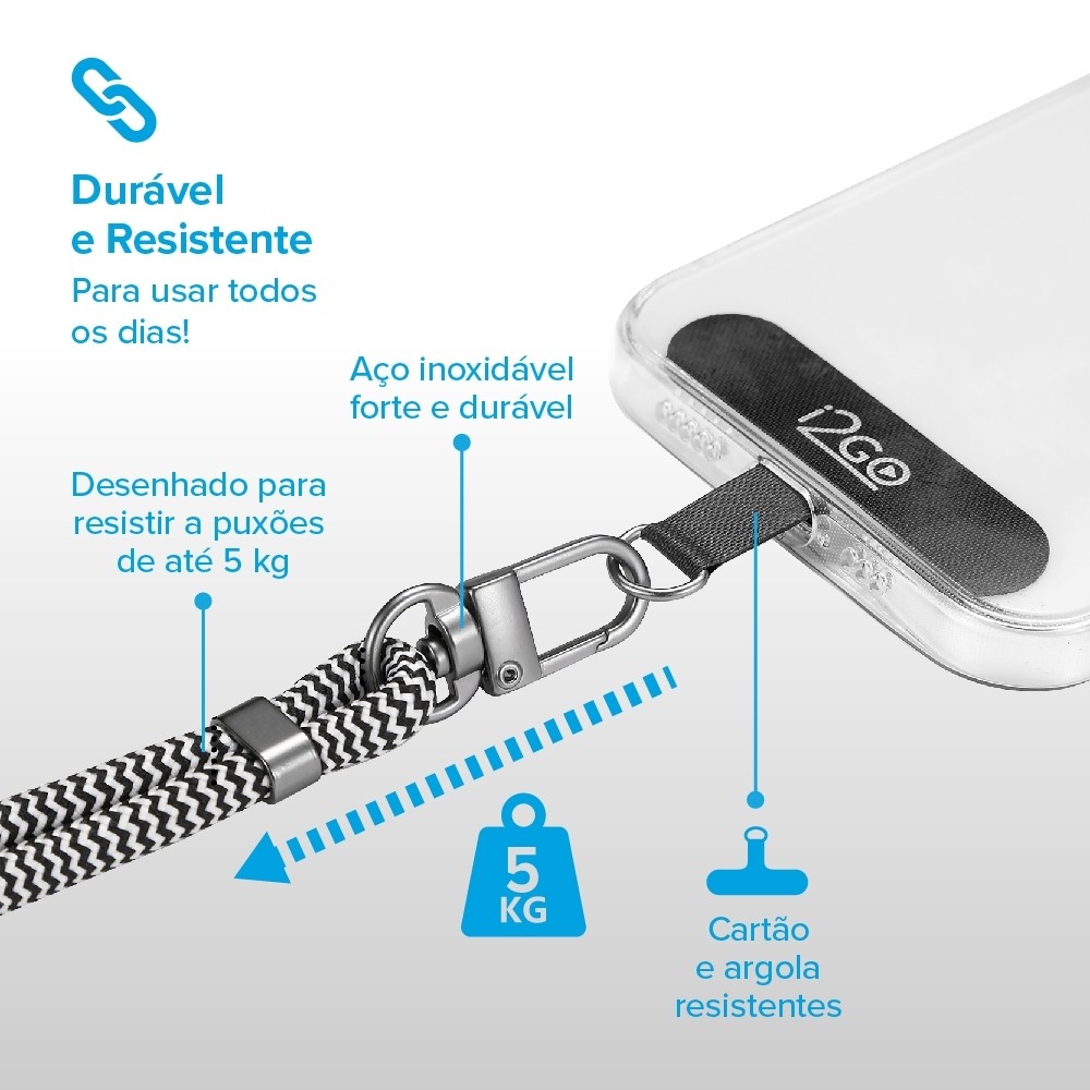 Cordão Para Smartphone i2GO Nylon Premium Preto e Branco
