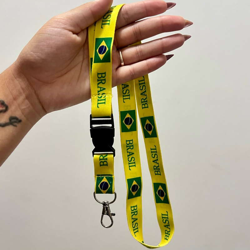 Cordão Pescoço Brasil Chaveiro Tirante Engate Rápido Presilha
