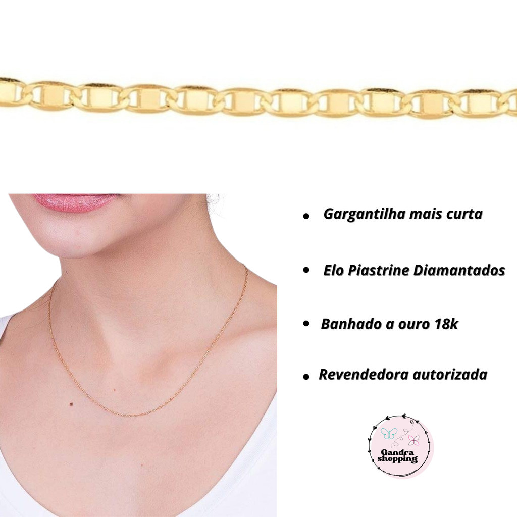 Cordão Rommanel Feminino 42cm Banhado A Ouro Original Antialergico Elos Piastrine Rentangular 531155