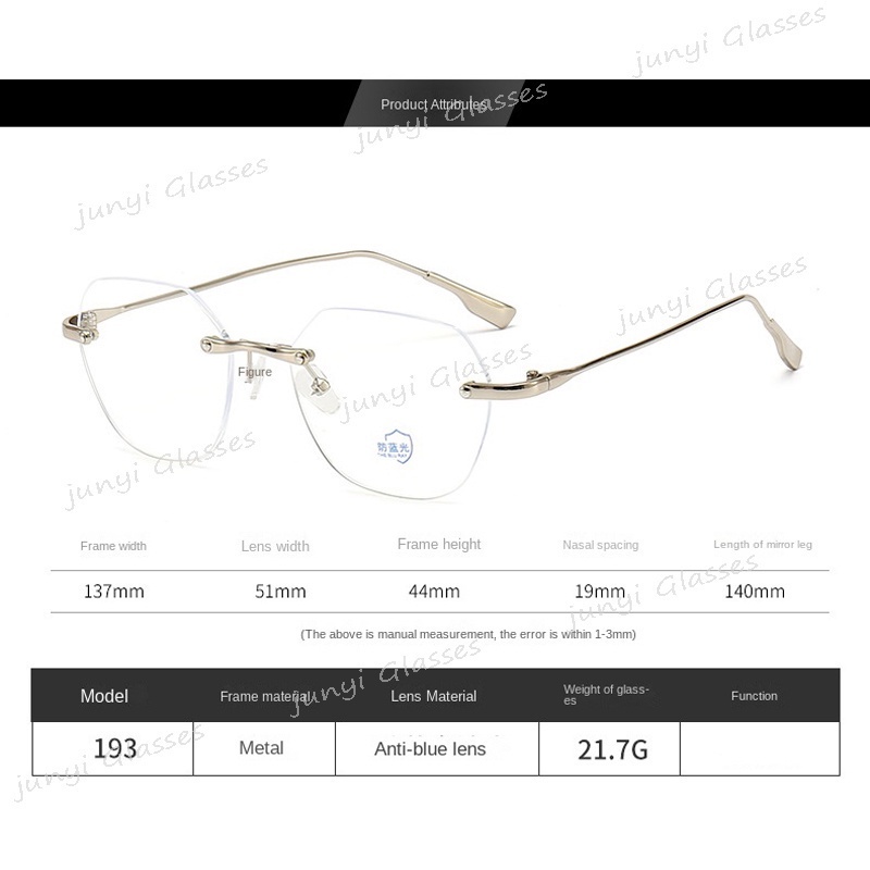 Coreano Anti-Luz Azul Proteção Dos Olhos Do Computador Radiação Armação Metálica Óculos Para Mulheres Homens Sem Moldura Quadrada