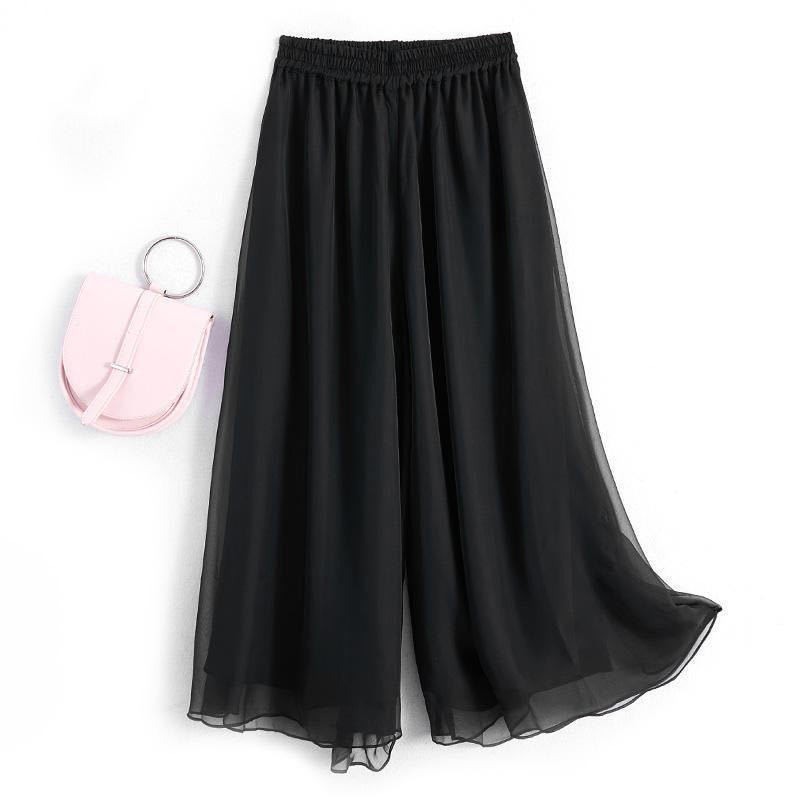 Coreano Feminino Cor Sólida Chiffon Calças De Perna Larga Verão Solto Pendurado Cintura Alta Magro Reta