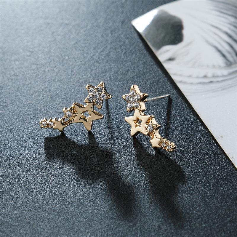 Coreano Simples Moda Zircão Estrela Brincos Geométricos Jóias De Diamante Para Mulher