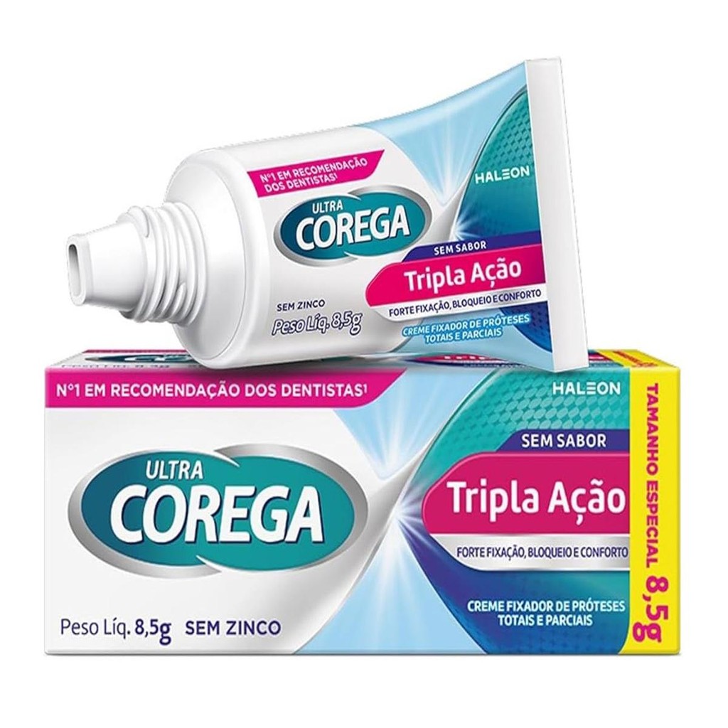 Este é um anúncio da RESILIFARMA, empresa do grupo D&F FARMA que atua há mais de 50 anos no mercado de saúde e beleza. Confira algumas vantagens de comprar na RESILIFARMA: -Temos CNPJ, somos uma empresa consolidada -Emitimos Nota Fiscal Eletrônica -Postamos sua encomenda no mesmo dia ou NO MÁXIMO no próximo dia útil Nossos horários de atendimento: -SEG A SEX das 7h00 às 17h30 LEIA COM ATENÇÃO TODO O ANÚNICIO ANTES DE FINALIZAR A COMPRA! ======================================== Creme Fixador De Dentadura Corega Ultra Tripla Ação Sem Sabor 8,5g ======================================== O Creme Fixador de Dentadura Corega Ultra Tripla Ação promove conforto e segurança para quem usa prótese dentária. Ele forma um filme selante que tem como principal função bloquear a entrada de alimentos entre a dentadura e a gengiva. Isso tudo para que não ocorra nenhum desconforto e também para ombater o desenvolvimento de bcactérias causadoras de mau hálito.Ainda conta com ação prolongada que permite apreciar todo tipo de alimento que você não conseguia antes. A força da sua mordida também vai aumentar, além de ser eficaz por até 12 horas. ----------INFORMAÇÕES IMPORTANTES ------------- -Os pedidos serão enviados em até 1 dia útil após APROVADOS pelo Shopee, salvo exceções como instabilidades em sistemas fiscais e logísticos, grande fluxo de pedidos ocasionados por promoções, épocas comemorativas do ano, ou devidos a atrasos ocasionados por empresas terceirizadas (transportadoras, plataformas on-line, fornecedores etc.). Manteremos você informado em qualquer caso de atraso na postagem de sua encomenda.