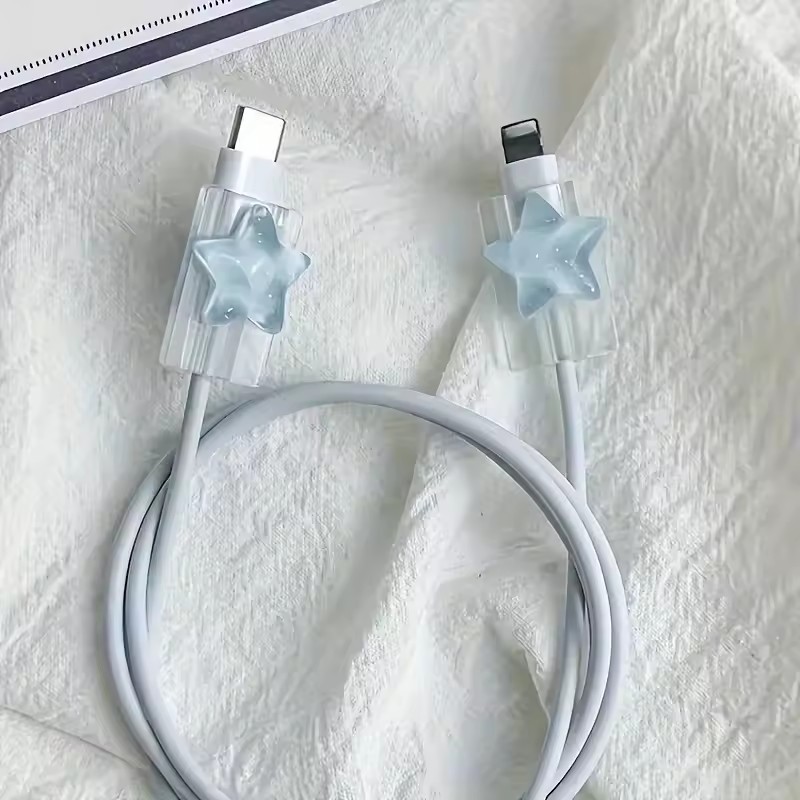Coreia Bonito 3D Oceano Estrelas Mudança Carregador Protetor Capa Linha Protetores Organizador Enrolador Acessórios