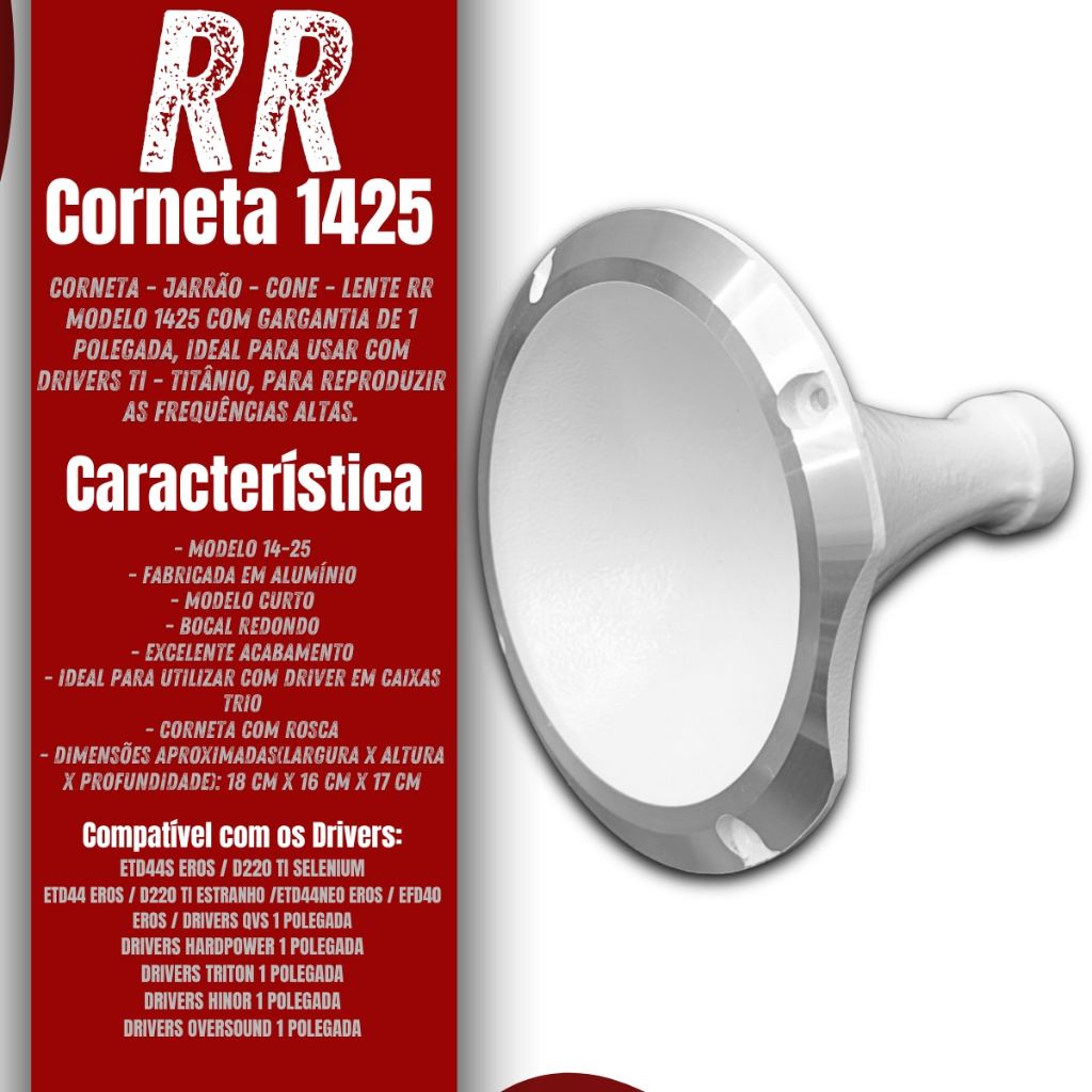Corneta Curta Modelo HL 1125 Branco ou Preto Cromado Boca Redonda Aba lisa Marca ENA ACESSORIOS A Corneta ENA ACESSORIOS HL 11-25 foi projetada para reproduzir alta pressao sonora com extrema clareza de som, e capaz de reproduzir agudos potentes e de qualidade impecavel. Fabricado em aluminio tratado, e extremamente rigido. Cor Disponivel: . Branco ou Preto Modelo Disponivel: . 1125 1 Polegada Especificacao Tecnica: . Modelo RR-1125 1 Polegada . Fabricada em Aluminio Injetado . Modelo Curto . Bocal Redondo . Disponivel na Cor Branca ou Preta com Cromado . Acabamento em Pintura Epoxi . Ideal para Utilizar com Driver em Caixas Trio . Cobertura Angular Horizontal e Vertical de 45? . Volume Ocupado: 0,9L . Corneta com Flange . Diametro da Garganta: 1 Polegadas . Diametro da Boca: 11,5cm . Comprimento Aproximado: 15,5cm . Profundidade da Corneta: 14,9cm Conteudo da Embalagem: . 01 Corneta RR1125 Rosca Interna 1 Polegada Importante: Garantia de 90 Dias Valor Unitario Imagens Meramente Ilustrativas Recomendamos que a instalacao seja feita por profissional especializado e nao nos responsabilizamos pelo mau uso do produto.