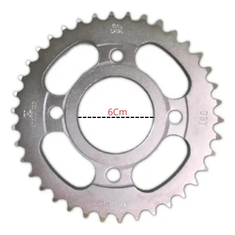 Coroa 38 Dentes Cg Titan 150 Cg 125 Até 99 Aço 1045 -TEMOS A PRONTA ENTREGA ! ------------------------------------------------------------- APLICAÇÕES ML 125 TODAS / TURUNA 125 TODAS / CBX 150 AERO TODAS CG 125 TODAS ATÉ O ANO 1999 / FAN 125 2009 Em Diante CG/TITAN/FAN 150 TODOS OS ANOS / TITAN/FAN 160 TODAS OBS : NÃO SERVE NA TITAN 125 ANO 2000 ATÉ 2004 NÃO SERVE NA FAN 125 ANO 2005 ATÉ 2008 Medidas: Medida furo a furo horizontal: 10CM Medida Furo a furo Diagonal: 7,5 Medida Total: 15,5Cm. Medida central: 6Cm ------------------------------------------------------------------------ DIFERENCIAIS COROAS ,ACABAMENTO QUE PROTEGE DA OXIDAÇÃO,,Tratamento contra corrosão disponível em duas opções de cores: cinza (T), oferece às peças maior resistência, diminui o arrasto e acúmulo de detritos, além de substituir a zincagem tradicional, eliminando o uso de ácidos e metais pesados, que são altamente poluentes. Testes realizados nos laboratórios da VAZ e no IPT atestaram a superioridade deste acabamento em até 6 vezes. INDUÇÃO TÉRMICA, MAIOR RESISTÊNCIA À ABRASÃO,Todas as coroas Aço Temperado são submetidas ao tratamento térmico de indução, fazendo com que o Aço Temperado se torne ainda mais resistente à abrasão. DINAMÔMETRO,PRODUTOS AVALIADOS E APROVADOS, utiliza dinamômetros, que trabalham com dados de telemetria que provêem das metas estabelecidas pelo setor de engenharia e desenvolvimento da empresa. Com eles são avaliadas as performances das peças (ganhos de rendimento) e endurance (analisa-se tanto se o desgaste está ocorrendo da maneira correta quanto o aumento na vida útil dos itens avaliados) e feitas aferições entre laboratório, softwares e dados coletados pelas motos de competições, integrando e auxiliando na troca de informações entre os setores da empresa. O dinamômetro de transmissão é o responsável por testar coroas, correntes e pinhões. Acionado por um motor elétrico de potência equivalente a 200cv, além da capacidade de simular as variações de velocidade e o uso constante (repetibilidade), também são feitos testes de tração durante o uso. AÇO Temperado,CONFERE MAIS RESISTÊNCIA ÀS PEÇAS, Produzido a partir de uma fórmula exclusiva, o Aço Temperado tem ligas de aço e a distribuição das moléculas de carbono uniforme, mantendo homogênea a rigidez do material em toda a sua extensão, evitando partes quebradiças e frágeis, proporcionando estampo de qualidade independente da espessura a ser alcançada, oferecendo mais resistência às peças. Além disso, a durabilidade e resistência do Aço Temperado estão relacionadas à têmpera (por indução), processo pelo qual é submetido, identificado pela letra (T). PRODUZIDO NO BRASIL , POR BRASILEIROS