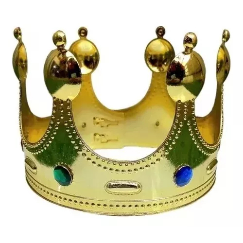 Coroa de Rei e Rainha Material: Plástico Tamanho: Único Regulável Medidas: cumprimento: 60 cm altura: 8 cm largura no encaixe da cabeça: 20 cm cumprimento , 60 cm largura maxima, 54 cm largura minima (possui ajuste) Cor: Dourada Com Detalhes Coloridos
