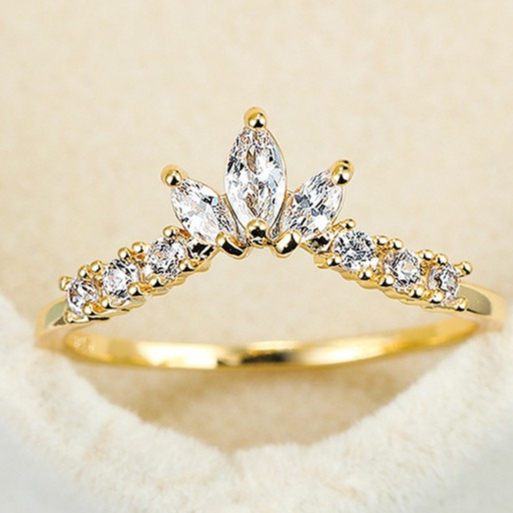 Coroa Diamante Cristal Moda Feminina Joias Ouro Titânio Anéis De Noivado Em Aço