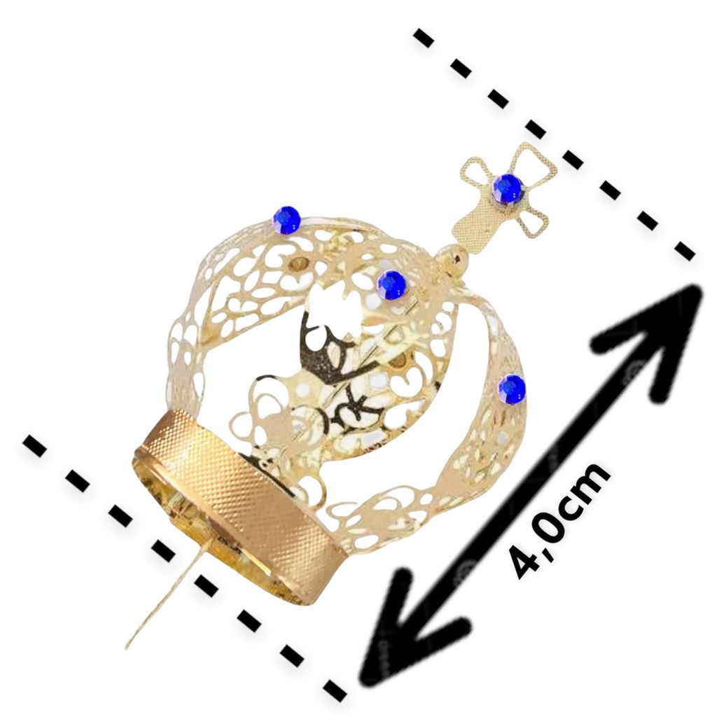 Coroa em metal dourado com acabamento brilhante, desenvolvida especialmente para imagens sacras de 15 a 20cm. Perfeita para oratórios, altares, capelas e lembrancinhas religiosas, trazendo beleza e destaque à sua devoção. ✔️ Tamanho ideal para imagens de 15 a 20cm ✔️ Acabamento dourado elegante e resistente ✔️ Material durável e de qualidade ✔️ Realce especial para imagens sacras