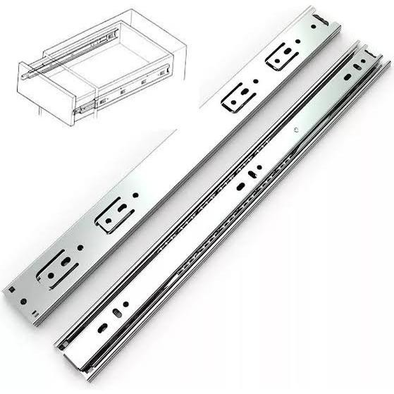 Corrediça Gaveta Trilho Telescópico H45 50kg Reforçada - Confie na melhor marca de ferragens do mercado, TN e FGVTN FABRICAÇÃO NACIONAL Descrição O Trilho Telescópico H45 LARGA REFORÇADA possibilita a abertura total da gaveta com deslizamento suave, preciso e resistente. Sua praticidade com travas laterais permite a retirada da gaveta. Desenvolvido para cargas menores. Acabamento: Zincado Tamanho da Corrediça: VARIOS Embalagem: Pares Material: Aço Salt Spray: 24 horas Peso Suportado: 50kg cada par APLICAÇÃO: Folga para Instalação 13mm RECOMENDAÇÃO SOBRE O USO * Pode ser utilizada em armários de cozinhas, escritórios, closets, quartos, banheiros, lavanderias, móveis em geral ou em prateleiras retráteis/extensíveis. * Pode ser utilizada em gavetas de até 40kg. BENEFICIO DO PRODUTO * Fácil instalação * Extração Total * Marca: TN FERRAGENS