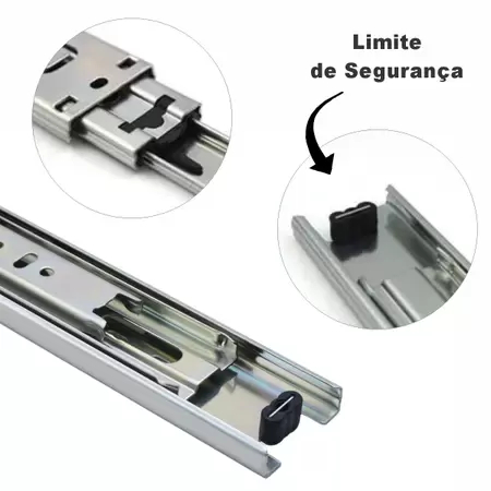 Descrição Corrediças telescópicas Light para gaveta de móveis e armários. As corrediças telescópicas proporcionam abertura suave e total de gavetas, pastas suspensas e sistemas telescópicos, com abertura total. Cada trilho é uma peça única que é fixada tanto na gaveta quanto na parede de apoio. Design moderno e discreto, adequado para quartos, cozinha, banheiros, escritórios, salas de estar e jantar e áreas de serviço. Características e qualidades: produzido em aço zincado abertura suave, silenciosa e total das gavetas trava de final de curso fácil instalação grande resistência e durabilidade Medidas de 250mm à 550mm Embalagem Contém: 1 par de Corrediça