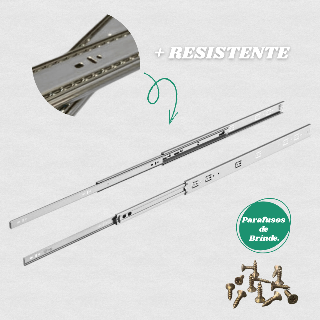 Corrediça Trilho Telescópico H45 Para Gaveta - 35cm, 40cm, 45cm e 50cm - Corredica HD