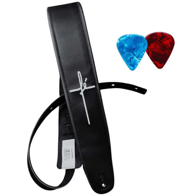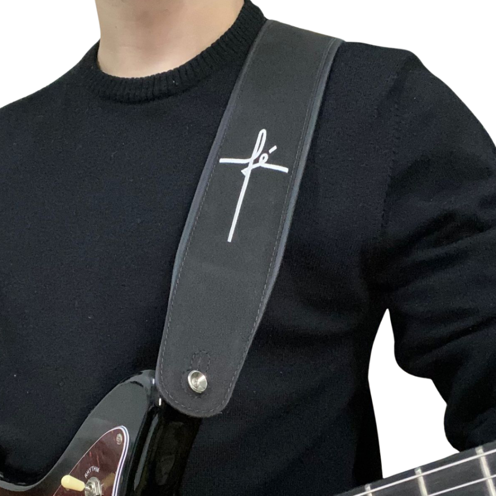 Correia Alça Gospel Guitarra Violão Baixo Acolchoada Bordada - Basso CLA FÉ PRETA+ 2 Palhetas