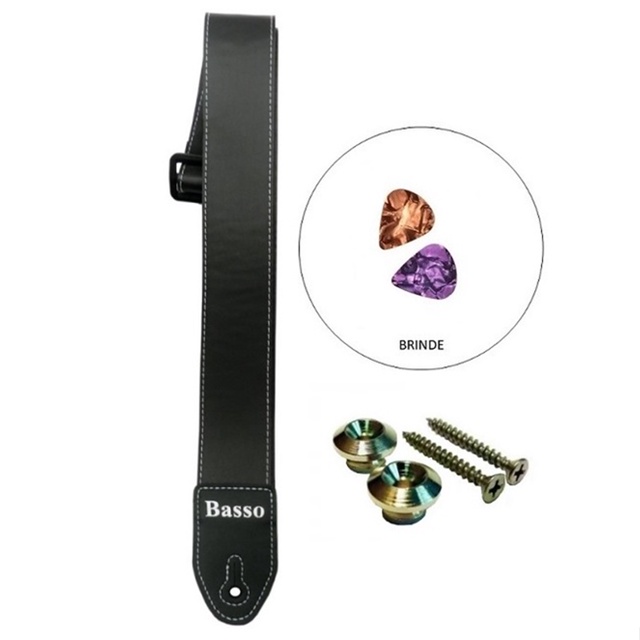 A correia BASSO é líder no mercado utilizado pelos melhores músicos, toda em material sintético evita absorção do suor, deslizando sobre o ombro do músico. Possui estampa micro quadriculada de alta definição que combina perfeitamente seja com um violão, guitarra, baixo até mesmo viola caipira. Desenvolvida para distribuir uniformemente o peso do instrumento no corpo do músico. Especificações: Comprimento variável: 100 - 145 cm Largura: 5 cm. Material: Couro Sintético Obs.: Devido recursos fotográficos, pode haver variação de tonalidade e cor conforme resolução de tela utilizada. Contém: 01 Correia 01 Par Roldanas 02 Palhetas (Brinde) *Sortidos *Imagens Ilustrativas