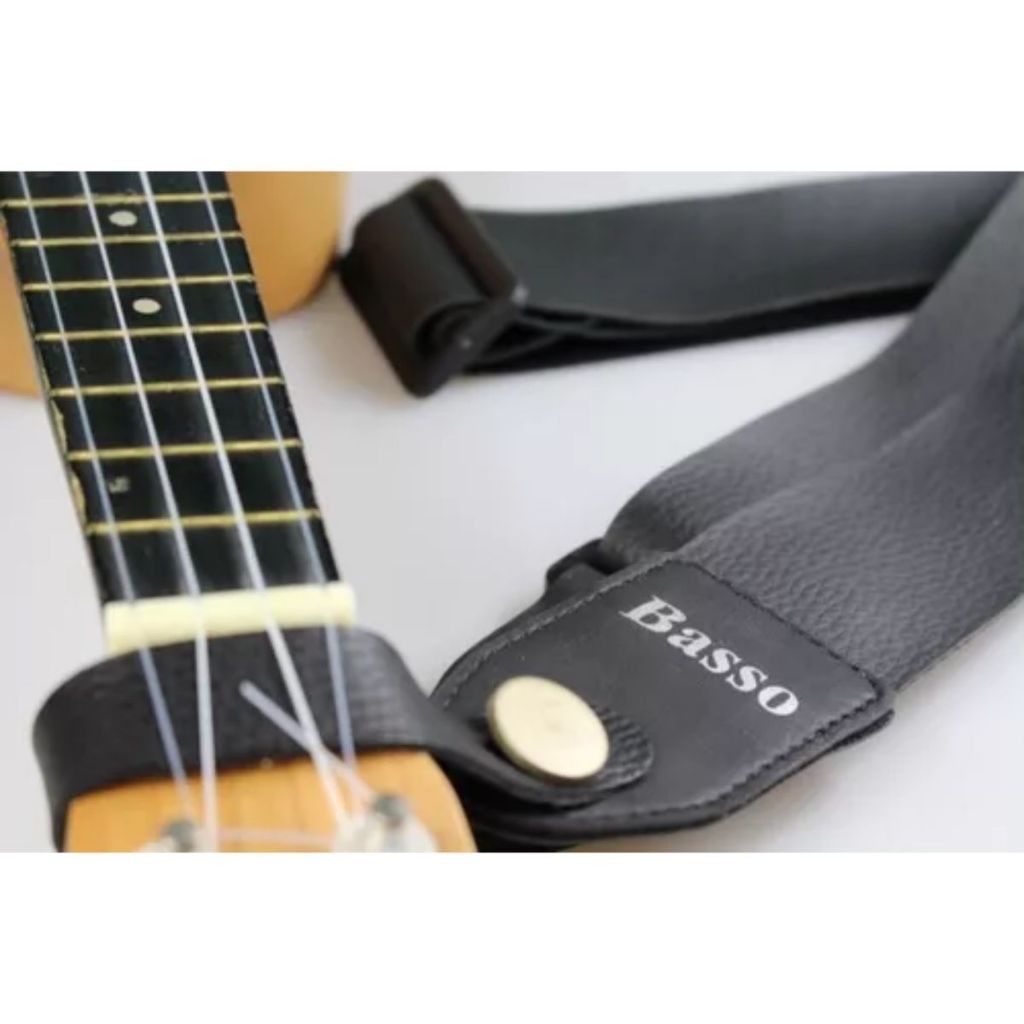 Kit Completo com Correia para UKULELE + Roldana e Parafuso+ 03 Palhetas + Porta Palhetas Especificações: Marca: Basso Modelo: UK 11 Econ Material: Couro Sintético Largura: 4cm Comprimento: Comprimento Total 1,40 metros, ajustável.
