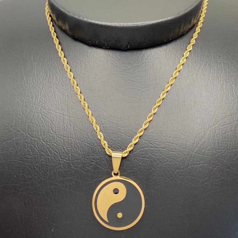 Corrente Baiano Yin Yang de aço inoxidável 45cm 60cm 70cm prata/Dourado