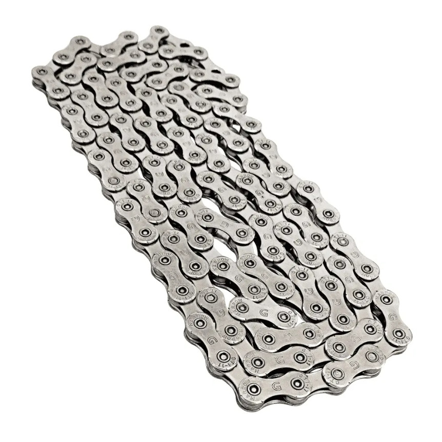 Corrente fina 9 velocidades 1/2 x 11/128 116 elos index SERVE PARA COROA NARROW WIDE (1X9) SERVE PARA MTB SPEED ROAD SERVE EM SISTEMAS PADRÃO SHIMANO E SIMILARES Medida: 1/2 x 11/128 Power link: não incluso Marca: DTO PACO composição: aço PESO: 292 gramas Design chanfrado - maior agilidade na troca de marcha, sem ruído