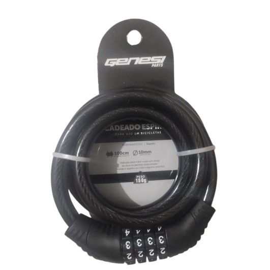 CADEADO BICICLETA COM SENHA CABO DE AÇO EMCAPADO 9mm de diâmetro e Comprimento 1 METRO Cadeado para Bicicleta com Senha Genesi Características: - Cadeado de Aço - Mais segurança - Contém quatro números de segredo que podem ser alterados para inúmeras combinações. - Alta resistência. - Encapado em borracha para não arranhar o quadro Senha inicial 0000 Troca se senha: Abrir o cadeado girar o anel interno colocar a senha desejada voltar o anel para a posição original