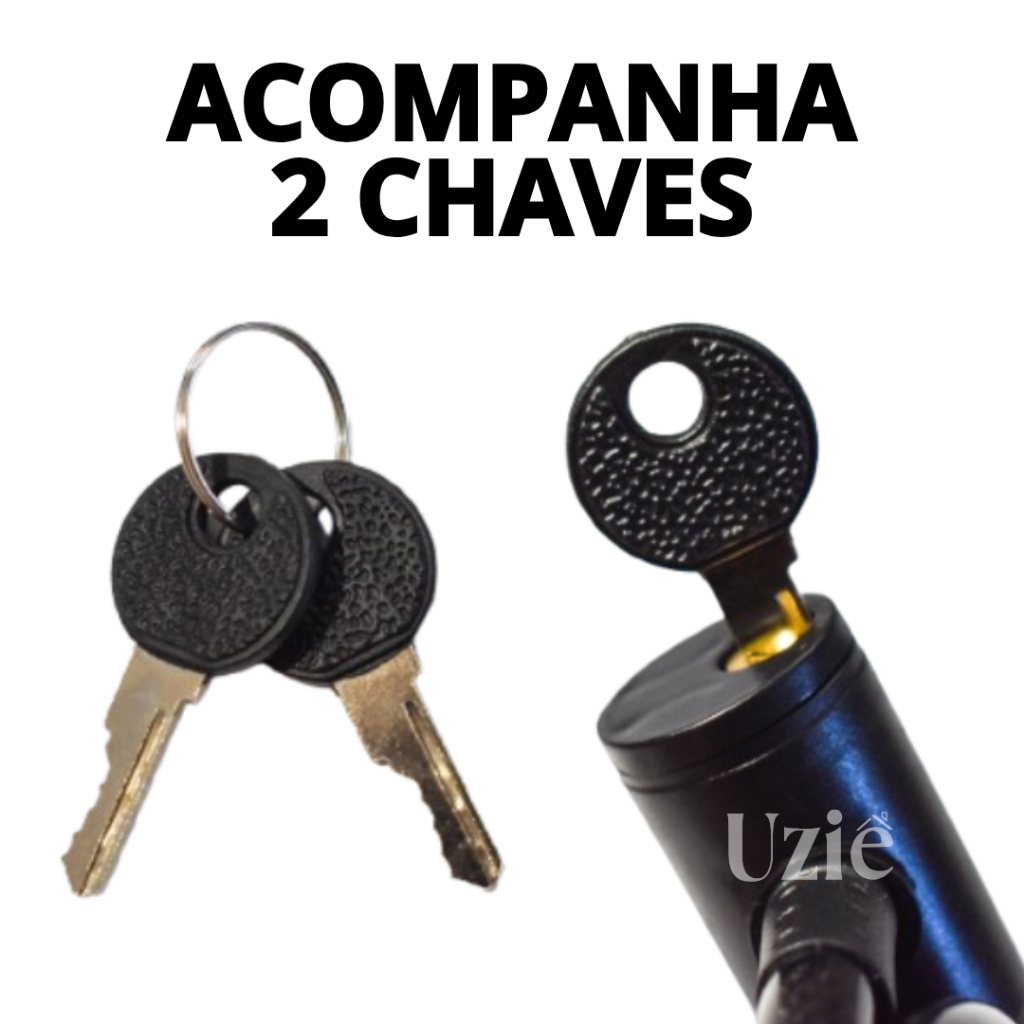 Corrente Cadeado Trava Cabo de Aço Grosso de Bicicleta Bike Moto 2 Chaves