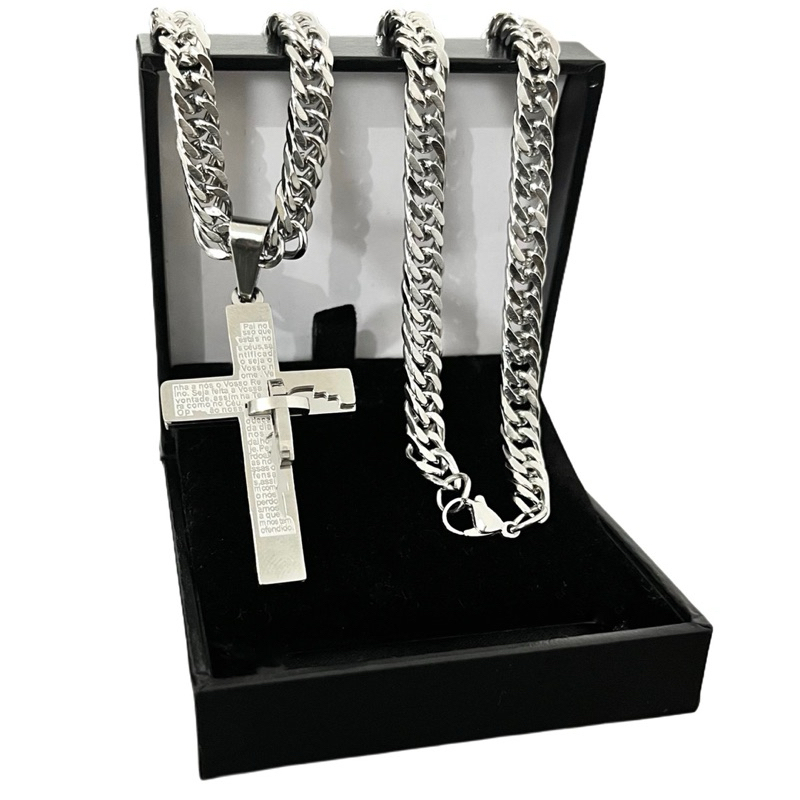 | Corrente Com Pingente Cruz Pai Nosso Aço Inoxidável Prateada este produto | R$ 44,00 | — | 4.9/5 | 7 |