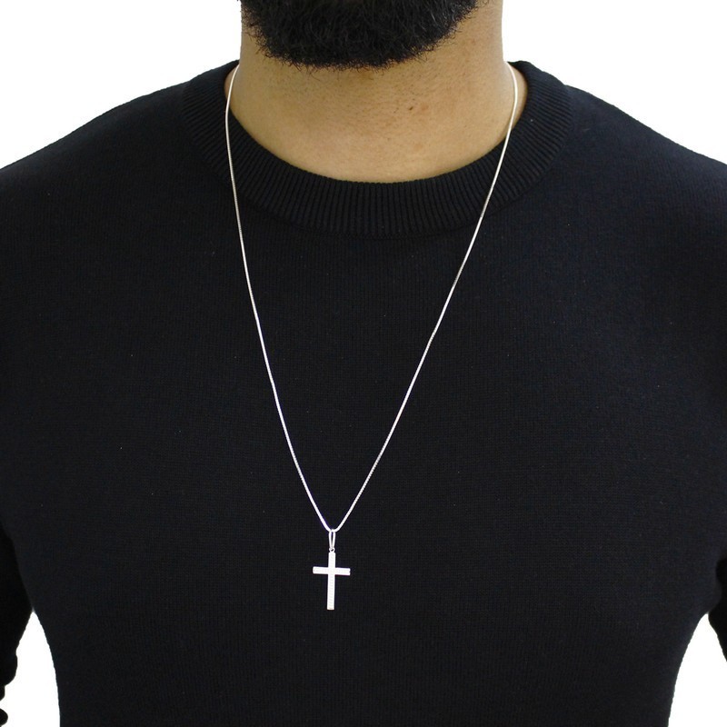 Corrente cordão de prata 925 Masculina Veneziana 70cm Pingente cruz pontilhada