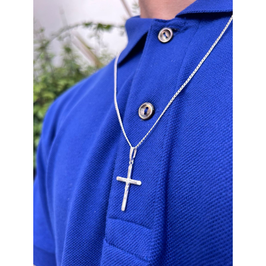 Corrente Cordão Grumet com Pingente de cruz Cristo Masculina em prata 925 Escama de Peixe