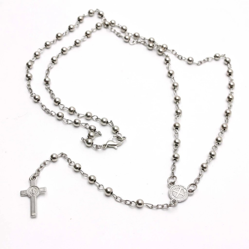 Corrente Cordão Masculino Terço Rosário Dourado/Prata Além do estilo, beleza, possuem alta durabilidade e anti-alérgico. Semi joia de excelente qualidade, linda e moderna que pode compor looks de diferentes estilos e ocasiões. MATERIAL **Bijuteria** - Comprimento da corrente do pescoço: 42 cm - Comprimento total do terço: 41 cm - Diâmetro das bolinhas: 2 mm