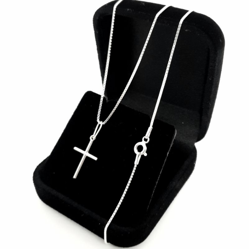 Corrente cordão veneziana 70cm + pingente cruz palito prata 925 legítima