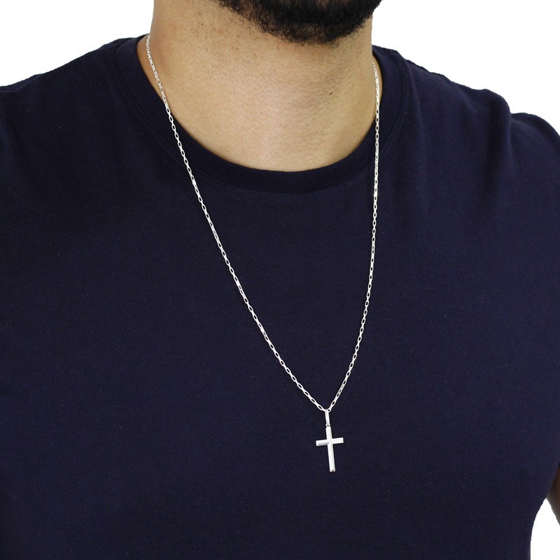 A Morelli Joias trabalha apenas com metais nobres, OURO 18K 750 e PRATA 925, ambos com garantia vitalícia de sua autenticidade. Temos muito cuidado com o processo de fabricação de nossas joias. Não reciclamos ouro ou prata, estratégia usada por muitas empresas e que pode alterar o teor da joia, uma vez que não há, na maioria das vezes, um controle de fundição individual para cada peça derretida, resultando em joias de baixo teor e que são comercializadas como sendo de alto teor. Por isso, nossa fundição é realizada de forma padronizada e conforme a porcentagem estabelecida como ideal no mercado brasileiro. Ao que se refere ao ouro 18k 750, são 75% de ouro 999 e 25% de liga metálica, o que nos proporciona um controle de teor e coloração das nossas joias. A nossa prata 925 também segue a padronagem, sendo 92,5% de prata e 7,5% de liga metálica. Além disso, são utilizados maquinários italianos de alta tecnologia para modelar nossas joias e para dar acabamento. Metal: Prata 925 Peso médio: 5,5g Malha: veneziana alongada Tamanho: 70cm Largura: 1,6mm Tipo de fecho: Fecho boia. Pingente: crucifixo Altura: 2,8cm Largura: 1,6cm Peso médio: 1g *Garantia vitalícia da autenticidade do metal *Acompanha certificado de autenticidade e garantia *Acompanha nota fiscal eletrônica *Acompanha sacola personalizada e caixa estojo da Morelli Nossas joias foram criadas, em sua maioria, para serem utilizadas diariamente, completando seu visual não apenas em ocasiões especiais, mas no seu dia a dia. Versatilidade e estilo que irão impactar e elevar a sua imagem pessoal, te proporcionando a confiança necessária para encarar os desafios diários e conquistar seus objetivos. Também acreditamos que nossas joias são excelentes opções de presente para quem você ama, pois expressam o seu amor e o valor que essa pessoa tem para você de forma especial e inesquecível. Toda vez que ela olhar ou usar a joia, certamente, lembrará de você e essa lembrança pode durar a vida inteira, uma vez que os metais nobres, que constituem uma joia, são resistentes ao tempo e podem, inclusive, passar por gerações. Curiosidades e dúvidas: As joias possuem garantia? Sim, possuem garantia eterna da autenticidade do metal Acompanham caixa? Sim, caixa estojo e sacola personalizada para presentear. O que significa ouro ou prata reciclados? Ouro ou prata adquiridos a partir de joias que foram derretidas com o intuito de confeccionar novas joias. É uma estratégia perigosa, visto que pode originar joias de baixo teor. Por essa razão, não utilizamos esse tipo de metal na Morelli. Por que algumas empresas usam ouro e prata reciclados? Pois assim elas conseguem obter o metal sem NF-e, ou seja, com custo mais baixo. Porém, esse metal pode sofrer alteração no seu teor durante o processo de reciclagem e originar uma joia de baixo teor. Além disso, a compra de metal reciclado fomenta indiretamente o mercado de roubo e furto de joias, visto que os criminosos buscam nessas empresas uma forma de escoar as mercadorias obtidas de forma ilícita. O que significa baixo teor? No Brasil, todo ouro que possui teor abaixo de 18k 750 e prata abaixo de 925 são considerados de baixo teor. Tem como purificar uma joia em ouro 18k? Sim, existe um processo que retira toda a liga metálica, porém é um processo de alto custo. As joias em prata escurecem? Sim, a prata é um metal que sobre oxidação Como limpar uma joia em prata? Recomendamos utilizar um limpa pratas. Aqui na Morelli indicamos e utilizamos o Monzi, deixamos de 1 a 2 minutos de molho, depois enxaguamos e realizamos o polimento com a flanela magica após a joia estar seca.