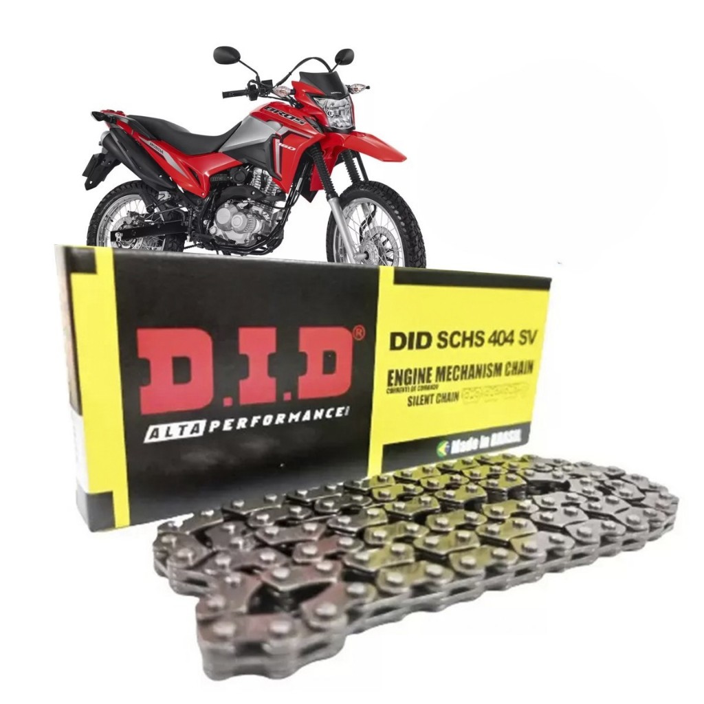 CORRENTE DE COMANDO DID - FAZER 150; CROSSER 150; FACTOR 150 (SCHS0404SV - 96LE) SKU:CORRENT/COMAND/DID/96L EAN: 17894932007042 Marca: DID Modelo: DID SCHS0404SV Peso aproximado: 500 Gramas INFORMAÇÕES TÉCNICAS: Lançada em 2018, a corrente de comando DID SCZ 0404SV possui o perfil da placa arredondado, é mais leve, possui excelente resistência a fadiga, apresenta menos ruído e maior durabilidade. COMPOSIÇÃO DO KIT: 01 (Uma) Corrente de Comando. MARCAS/MODELOS COMPATÍVEIS: YAMAHA FAZER 150; CROSSER 150; FACTOR 150 IMPORTANTE: Garantia de 3 meses; Valor unitário; Imagens meramente ilustrativas; Recomendamos que a instalação seja feita por profissional especializado e não nos responsabilizamos pelo mau uso do produto; Sugerimos que, antes de efetuar a compra, verifique se realmente o problema está na Corrente de Comando; Leve a um mecânico de sua confiança.